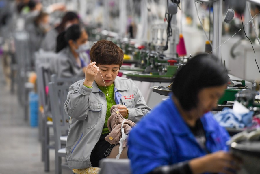 2月2日,赤峰東黎羊絨股份有限公司的工人在生產(chǎn)線上工作。新華社記者 彭源 攝