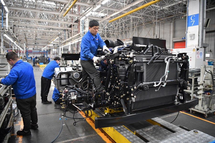 2月2日,工人在陜汽控股集團(tuán)重卡總裝車間裝配零件。新華社記者 邵瑞 攝