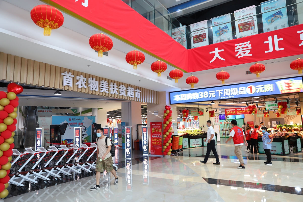【記者高春頎北京報(bào)道】7月28日,在北京市國(guó)資委、市商務(wù)局、市委網(wǎng)信辦、市總工會(huì)、市扶貧支援辦、豐臺(tái)區(qū)政府主辦的“北京消費(fèi)扶貧月暨市管國(guó)企消費(fèi)扶貧月”活動(dòng)上,物美集團(tuán)與首農(nóng)食品集團(tuán)共同打造的北京首家扶貧超市——物美草橋雙創(chuàng)中心店正式開(kāi)業(yè)。超市位于北京消費(fèi)扶貧雙創(chuàng)中心一層,重點(diǎn)推廣來(lái)自全國(guó)各地扶貧商品和北京對(duì)口扶貧地區(qū)7省91縣商品,將帶動(dòng)幫扶地區(qū)建檔立卡貧困戶30717戶增收脫貧。
