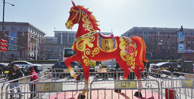 隆福寺門口的馬年主題裝置。本報(bào)記者曹原源/攝