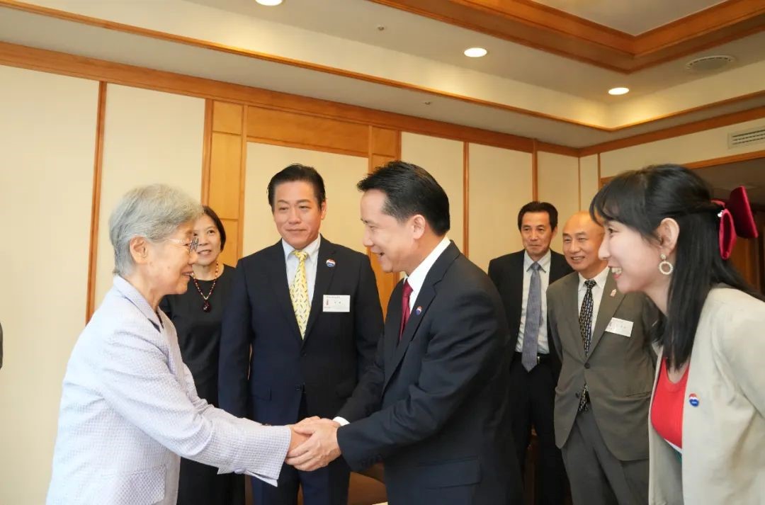 松崎君代先用中文表示感謝,接著說,“辛苦您了,這么遠距離,(跨越)千山萬水飛過來?!?/p>