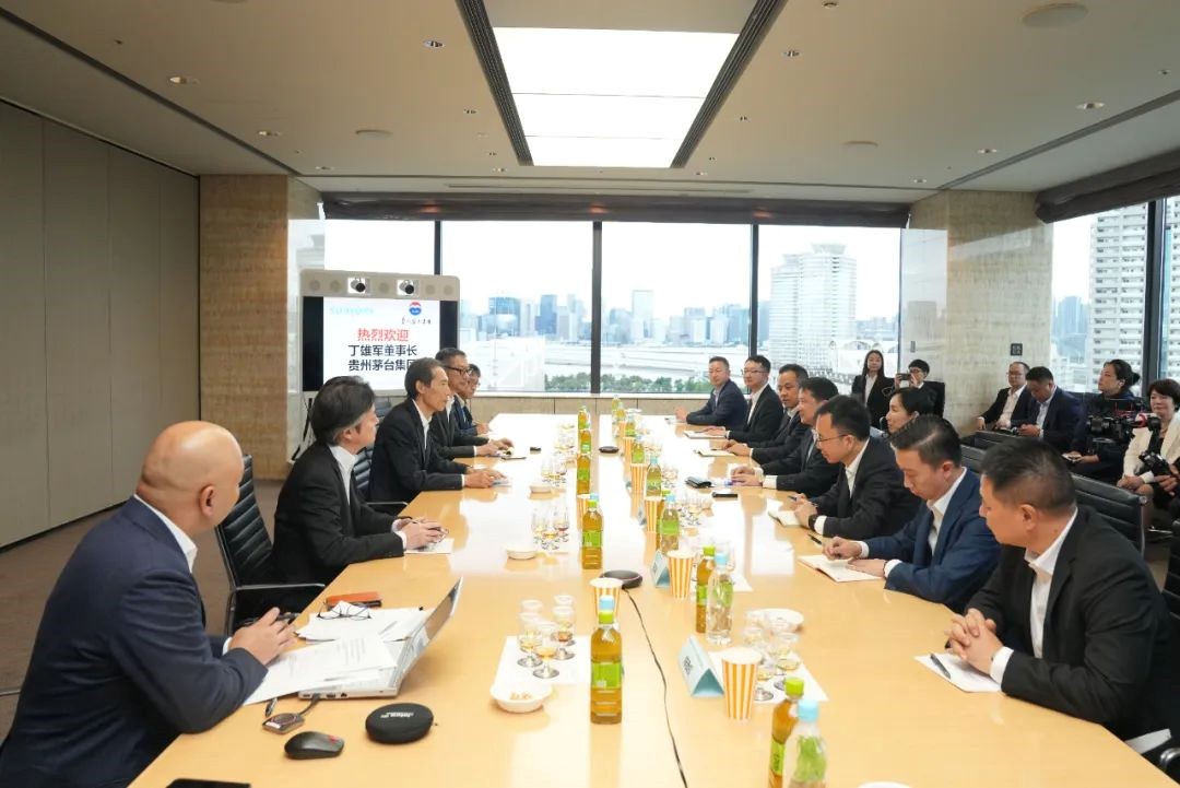 日本時間9月22日下午,丁雄軍一行走進日本三得利公司全球總部,與三得利代表董事副總裁肥塚眞一郎深入交流創(chuàng)新和國際化,并相互品鑒威士忌原酒與茅臺酒系列。