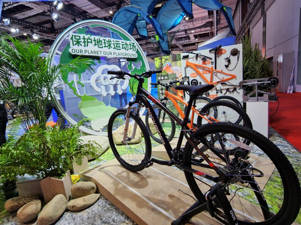 第五屆進(jìn)博會(huì)消費(fèi)品展區(qū)迪卡儂的全球首發(fā)新品——生態(tài)設(shè)計(jì)山地自行車。新華社記者 王默玲 攝