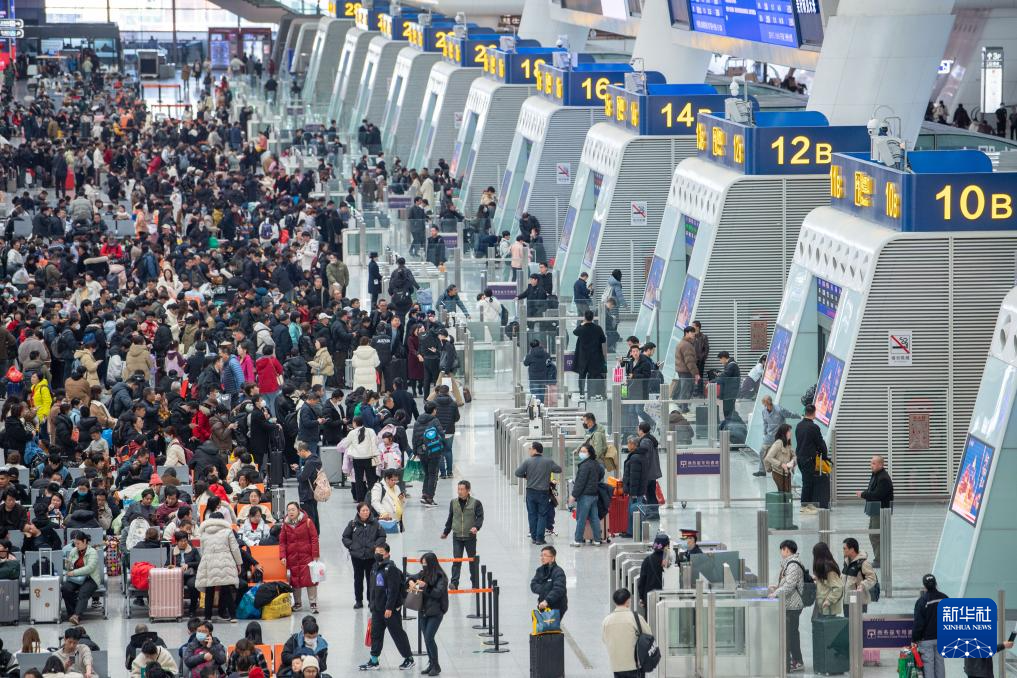2024年2月17日,旅客在杭州東站候車大廳等待乘坐列車。新華社記者 江漢 攝